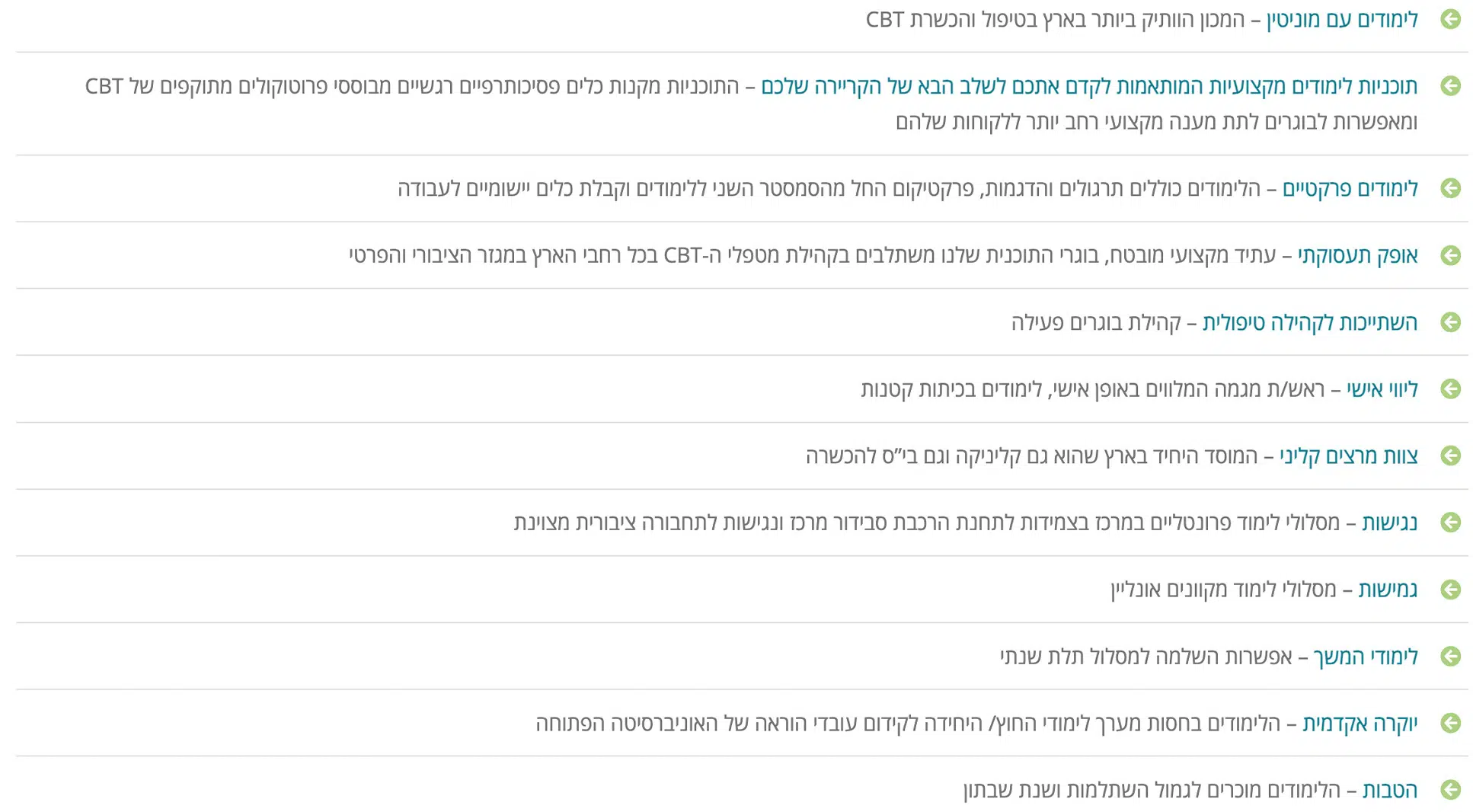 מכון פסגות הפועל בשיתוף האוניברסיטה הפתוחה, הוא מכון הלימודים הוותיק בארץ בתחום הקוגניטיבי התנהגותי, והיחיד בארץ המקיים את המגמה העולמית של לימודים לפי פרופסיות ולימודי cbt אונליין.